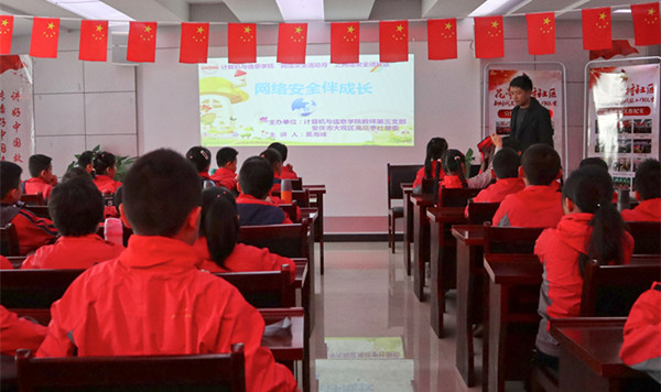 10月17日下午,365上市公司教师第三党支部赴安庆市高花亭北村社居委开展网络安全主题宣讲活动,为社区学生开展“网络安全伴成长”知识讲座,并发放了安全知识宣传材料。讲座由学院第三支部组织委员吴海峰副教授主讲,来自高花亭小学的50余名学生聆听了讲座。