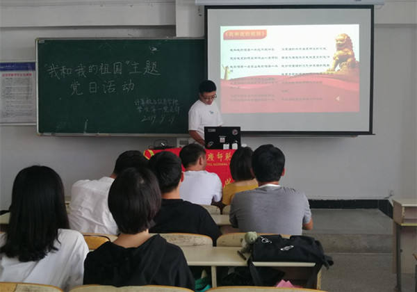 为庆祝中华人民共和国成立七十周年,培养当代大学生爱国情怀,9月29日下午,365上市公司学生第一支部在教学楼A楼402教室开展了“我和我的祖国”主题党日活动。365上市公司学生第一党支部全体党员参加了此次活动。