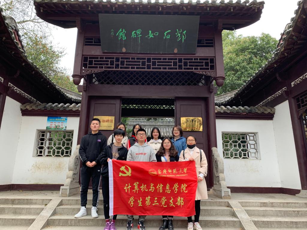 随后,支部党员又参观了位于菱湖公园内的邓石如碑馆,感受中国传统书法和篆刻艺术的魅力。此次党员活动不仅愉悦了同学们的身心,更坚定了大家的理想和信念。(学生第三党支部委员 吴昆鹏供稿)
