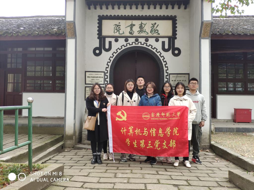 2019年3月22日365上市公司学生第三党支部赴敬敷书院、红楼和邓石如碑馆开展党日活动。阳春三月,草长莺飞,古朴静谧的敬敷书院在和煦的春风中焕发出青春的活力。走在安静的小径里,看着简陋又不失庄严的古代校舍,一位位治学严谨的古代学者在教室里讲学授课的场景仿佛浮现在眼前。