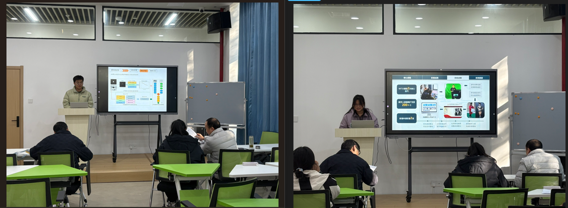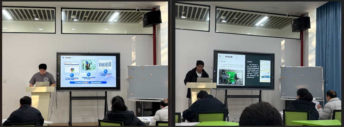 2025年立项的国家级、省级、校级项目共23项,涵盖智能制造、智慧农业、生物医药、文旅创意等多个学科领域。答辩过程中,各项目团队负责人围绕项目进展情况、已取得的阶段性成果、下一步研究计划、经费使用情况以及目前存在的困难等方面,通过PPT展示、实物演示、数据图表等多种形式进行了详细汇报。从基于无人机与智能车联动的农业监管体系,到基于视觉情感计算模型的大学生心理状态监测系统;从沉浸式文旅融合剧本游系统设计与应用,到基于AI技术的黄梅戏戏曲大模型,从针对烟尘烟雾检测识别的深度学习算法,到面向铝合金压铸过程中的过滤网检测算法研究,充分体现了项目传承地方特色文化和为地方经济发展提供支持的趋势,也展现了我院学子敏锐的创新思维、扎实的专业素养和勇于实践的创业精神。