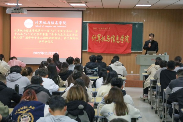 11月23日,学院于L楼314教室召开了第十一届“e”文化节总结、第十二届“e”文化节开幕暨“青年马克思主义者培养工程”团学骨干培训班第二期结业、第三期开班大会。学院党委副书记刘燕杰、团委负责教师、部分辅导员、两期“青马班”学员、2022级各班班委、学生会骨干共150余人参加会议,会议由团委负责教师主持。