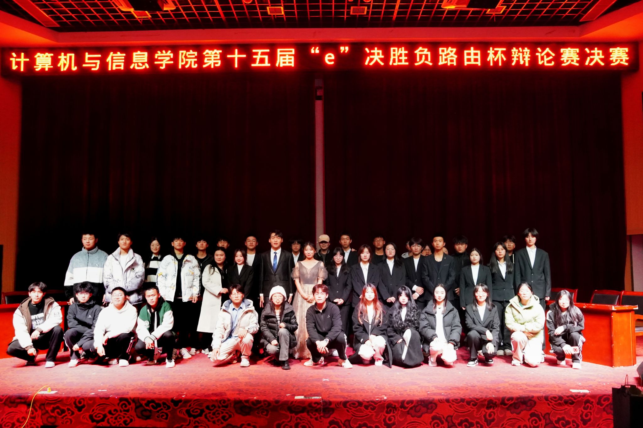 此次决赛采用分组对抗的形式,各组队员立足实际展开论述,引据经典,针锋相对,互不相让。观看辩论赛的同学们随着辩手们的辩论时而引发思考,时而赞声连连,来自365上市公司九班的郑升译同学表示,自己被现场激烈的辩论氛围感染,找到了优秀的榜样,“辩手们的精彩表现让我对辩论产生了浓厚的兴趣,希望有一天我也可以站在舞台上展示自己的风采”!最终,2023级计算机大类5班获得本次辩论赛决赛冠军。