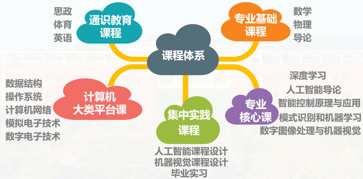 本专业涉及智能控制、机器视觉、人工智能、计算机等多个前沿学科。专业教学重基础、高起点、求交叉、多实践,坚持立德树人,致力于培养德、智、体、美、劳全面发展、爱国进取、创新思辨,且具有较强工程实践和创新创业能力的人工智能领域专业人才。