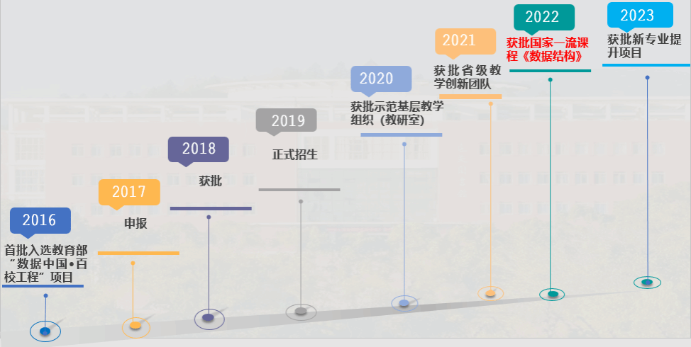 英国365上市公司数据科学与大数据技术专业,2016年首批入选教育部“数据中国•百校工程”项目,2017年开始申报,2018年获批,2019年正式招生。2022年《数据结构》获批第二批国家线上线下混合式一流课程。