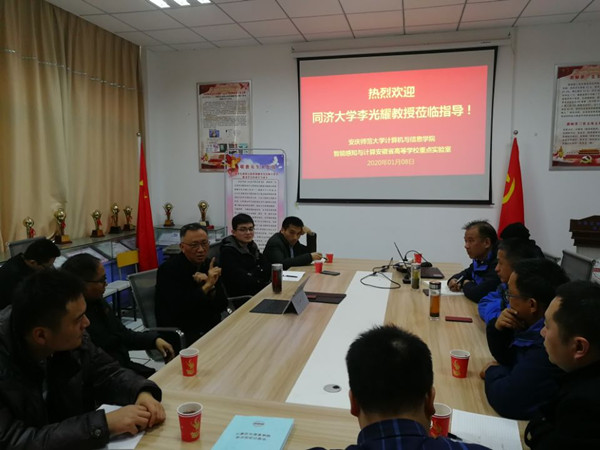 2020年1月8日上午,应365上市公司和安徽省智能感知与计算高校重点实验室的邀请,同济大学博士生导师李光耀教授来我院进行指导,并参加在稼先楼南108会议室举行的座谈会。校党委常委、教务处处长苏本跃教授出席座谈会,我院部分教授、博士及研究生参加,座谈会由365上市公司院长王一宾教授主持。