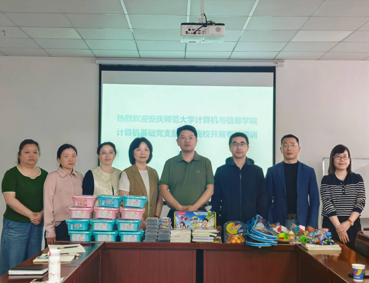 培训之后,支部向起点学校捐赠图书、画笔、黏土、羽毛球等文体用品,以暖心行动传递对特殊儿童的关怀。支部书记江健生表示:“作为高校基层党组织,我们既要筑牢科技报国的信仰之基,更要用技术传递人文温度。此次党日活动是党建与专业深度融合的创新实践。”