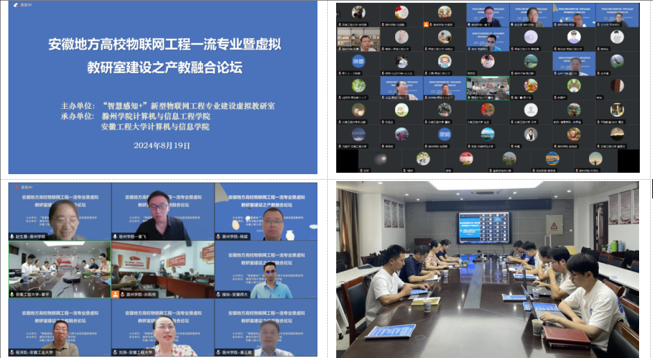 为深入贯彻党的二十届三中全会精神,统筹推进科技、教育与人才战略支撑工作,促进教育与产业对接,探索人才培养新模式,8月19日,由“智慧感知+”新型物联网工程专业建设虚拟教研室主办,滁州学院和安徽工程大学共同承办的“安徽地方高校物联网工程一流专业暨虚拟教研室建设之产教融合论坛”线上举行。来自省内13所高校计算机学院领导、骨干教师和行业专家共60多位参加了此次会议。我院物联网工程负责人汪文明应邀参会并做专业建设分享报告。