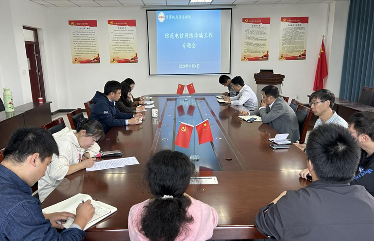 11月4日,学院召开防范电信网络诈骗工作专题会,部署和安排防范电信网络诈骗工作。院党委副书记刘燕杰主持会议,全体专兼职辅导员参加会议。