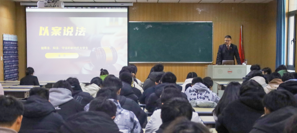 12月18日,学院开展法治教育活动,邀请安庆市中级人民法院四级高级法官、我院2002届校友金京为2024级新生进行法制知识宣讲,对电信网络诈骗和考试违纪等进行了讲解。院党委副书记刘燕杰主持宣讲活动。