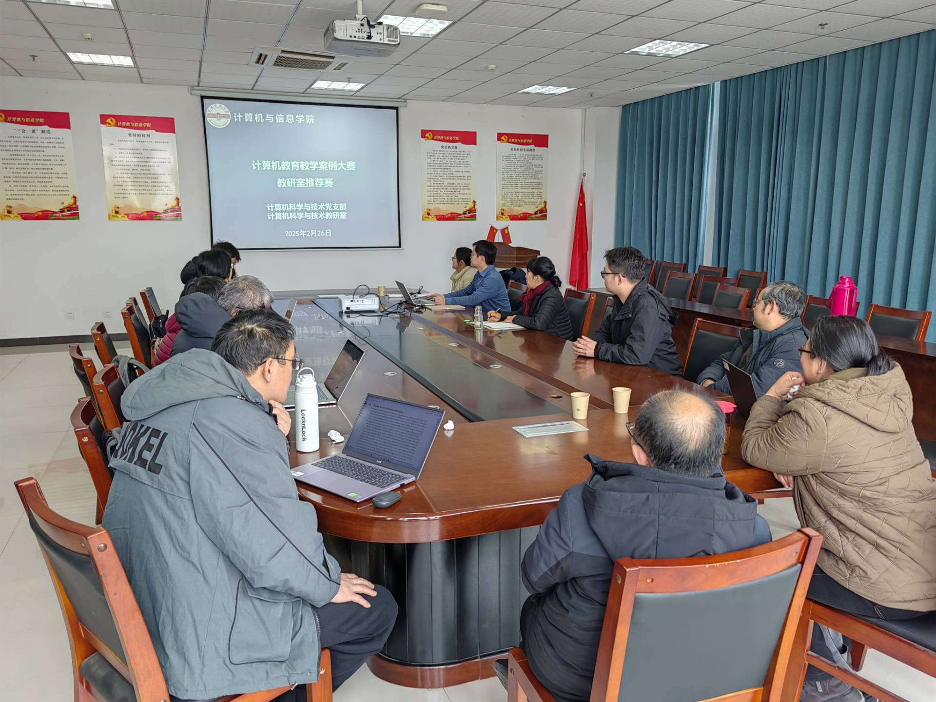 2月26日下午,计算机科学与技术教研室举行安徽省高校计算机教育教学案例大赛教研室选拔赛。比赛由教研室副主任詹青主持,党委书记陈银凤全程参与指导。