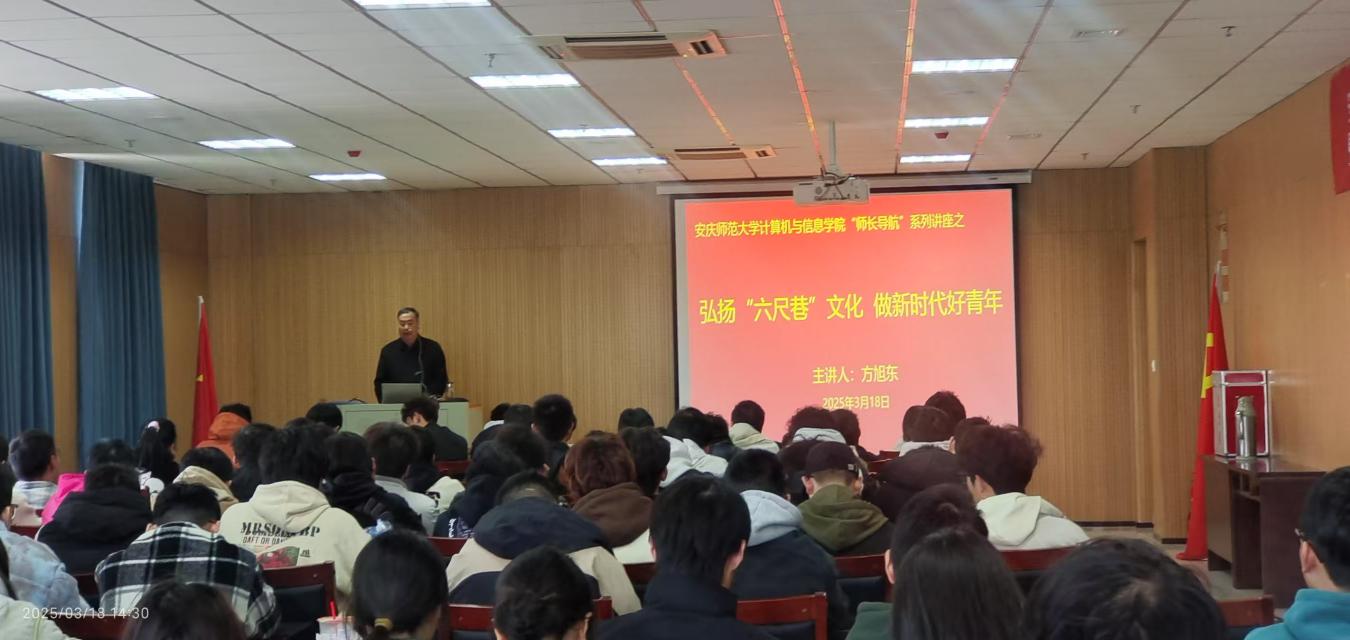 方旭东从桐城六尺巷的文化历史入手,结合生动的历史故事解读了“六尺巷文化”的内涵,带领在场学生深入学习了习近平总书记考察安徽的重要讲话精神,深刻领悟先人化解矛盾的历史智慧,增强新时代青年弘扬中华优秀传统文化的政治自觉与历史责任感;他结合实例讲解了“六尺巷工作法”的实践应用,勉励大家积极实践用好“六尺巷工作法”,传承好中华民族讲求礼让、以和为贵传统美德,从六尺巷文化中汲取智慧与力量,将其融入到日常的学习与生活中,知行合一,不断促进自我成长与发展,展现新时代青年的风采。报告主题鲜明、内涵丰富、事例生动,既有理论高度,又有实践深度,对青年大学生的成长具有很强的指导性和针对性。