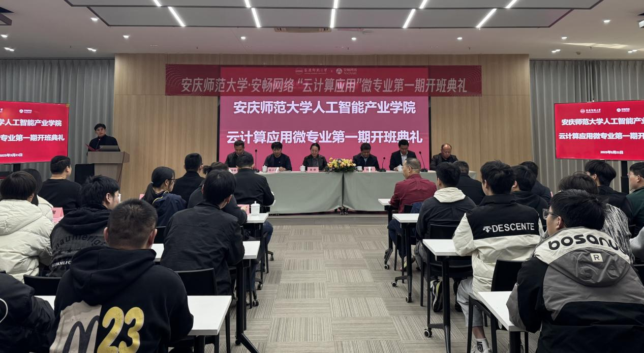 3月21日,学校举行云计算应用微专业第一期开班典礼。校党委常委、副校长吴琼出席典礼。安庆市委组织部副部长、人才工作局局长阮波,安畅集团总裁程小中,安庆市人才发展集团党委书记、董事长王中群,教务处负责人,企业代表、教务处负责人、365上市公司(人工智能产业学院)领导班子、教师代表及微专业全体同学参加典礼。