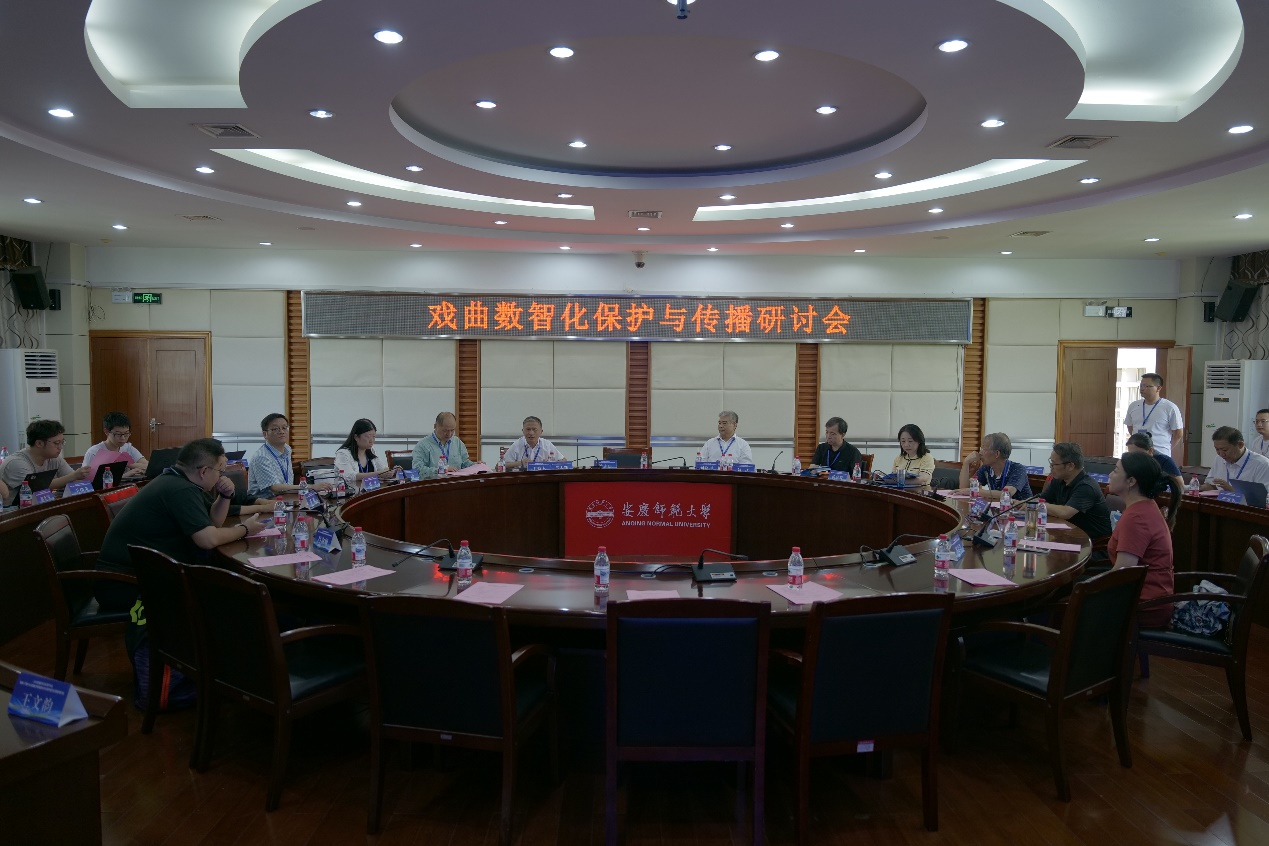 南京信息工程大学潘志庚教授主持圆桌研讨环节。浙江大学彭群生、合肥工业大学刘晓平、中国电影研究所刘达、安庆市文旅集团杨晶琦、英国365上市公司黄梅剧学院李俊、安徽省皖江文化数字化保护与传承工程研究中心王广军以及戏曲与曲艺博士点立项建设学科骨干成员,聚焦“戏曲数智化发展路径”及“如何支撑学校戏曲与曲艺博士点立项建设”两大核心议题展开了深入交流与研讨。