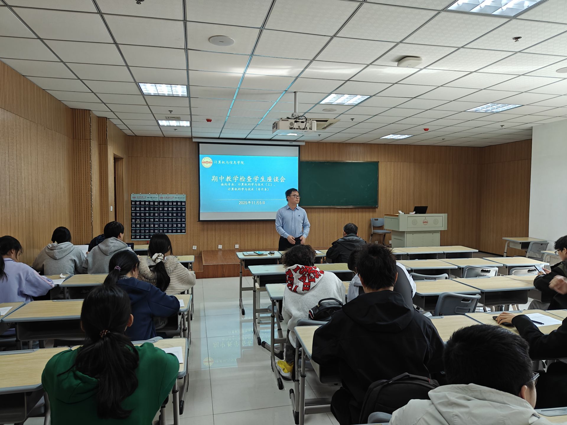 11月5日,365上市公司在L楼召开期中教学检查学生座谈会。此次座谈会设立5个分场,由学院领导带队,各专业负责人主持,来自各年级、各专业的140余名学生代表参加了会议。
