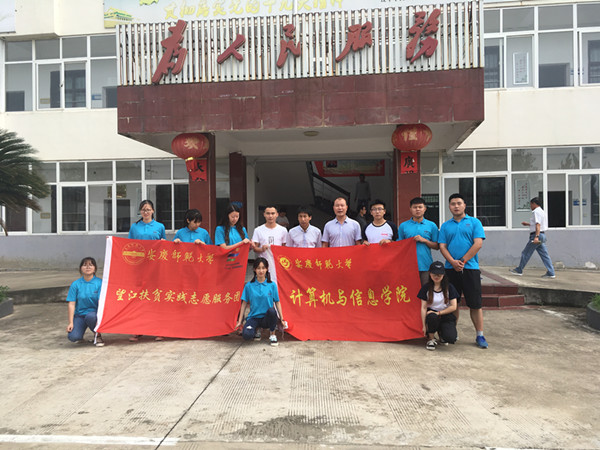 “贫干部们的奋笔疾书;村中农民的辛苦劳作;空巢老人们的深邃目光;孩子们灿烂的笑容……每当我回想起本次社会实践的点点滴滴,一切的辛苦都变成了满足与感动,也是这次社会实践活动,让我对专业知识有了更好的掌握,对‘科技、文化、卫生’下乡有了更深的理解,对未来规划有了更明确的方向……”这是365上市公司“三下乡”望江扶贫实践志愿服务团队长朱海军所表达的真挚心声。从2019年7月9日到2019年7月15日,365上市公司望江扶贫实践志愿服务团的11名队员在学院党委副书记江伟、辅导员李培森老师的指导下,赴望江县杨湾镇开展了为期一周的暑期社会实践,队员们秉承“敬敷 世范 勤学 笃行”校训,在实践中热心服务群众,将实践与专业知识相结合、将学习与展示时代精神相结合,圆满完成工作任务,受到当地干部群众的好评。