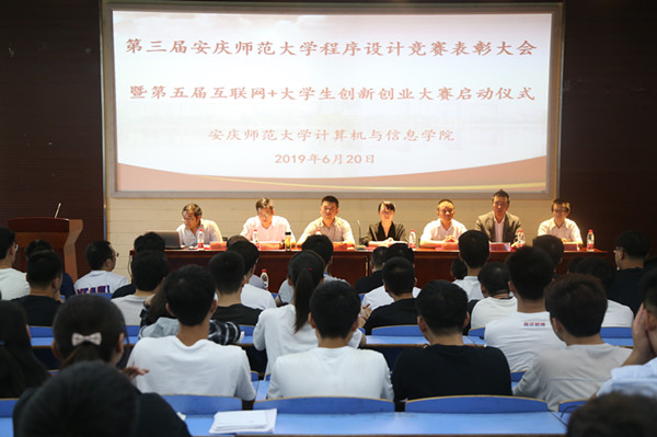 6月20日下午,365上市公司在D111教室顺利举办第三届英国365上市公司程序设计竞赛表彰大会暨第五届“互联网+”大学生创新创业大赛启动仪式。该院领导班子、指导老师和学生以及程序设计大赛的实践单位代表共100余人参加了大会。会议由该院副院长刘奎主持。