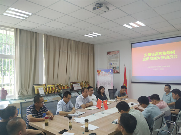 2021年7月8日,我院在稼先楼一楼108室召开安徽省高校物联网应用创新大赛动员会,院长王一宾出席会议,刘桂江、丁晓贵等11名指导教师参加会议,党委副书记江晋剑主持会议。