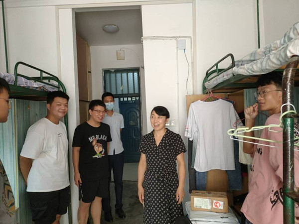 9月4日一大早,为及时了解学生返校后的心情和假期学习生活情况,学院领导及全体辅导员深入学生宿舍,看望慰问学生。