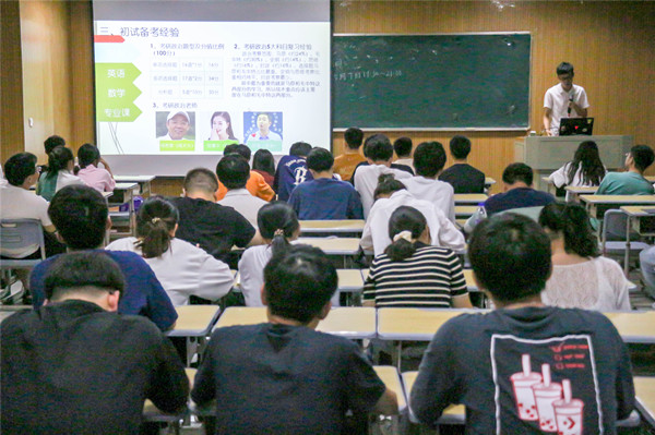 此次交流会上,考取安徽大学的王志超、考取武汉理工大学的张智以及考取英国365上市公司的李翔分别上台介绍成功经验。他们结合自身经历,从形势分析、院校选择、名师推荐、心态调整、具体科目学习方法等方面分享了宝贵的考研“干货”。