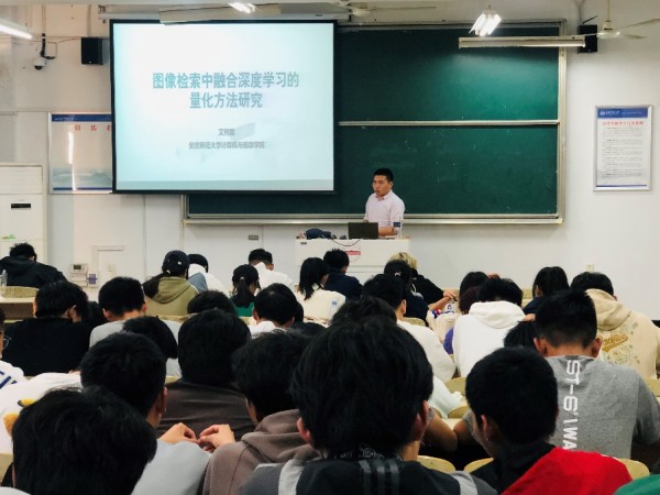 11月9日,我院艾列富副教授在龙山校区A305作了题为“图像检索中融合深度学习的量化方法研究”的学术报告。学院计算机专业本科生以及软件工程专业部分硕士研究生参加了本次报告会。