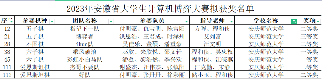 2023年11月24日,365上市公司程和侠老师一行带领学生赴合肥参加2023年安徽省博弈大赛决赛,取得1个一等奖、5个二等奖、1个三等奖的好成绩。