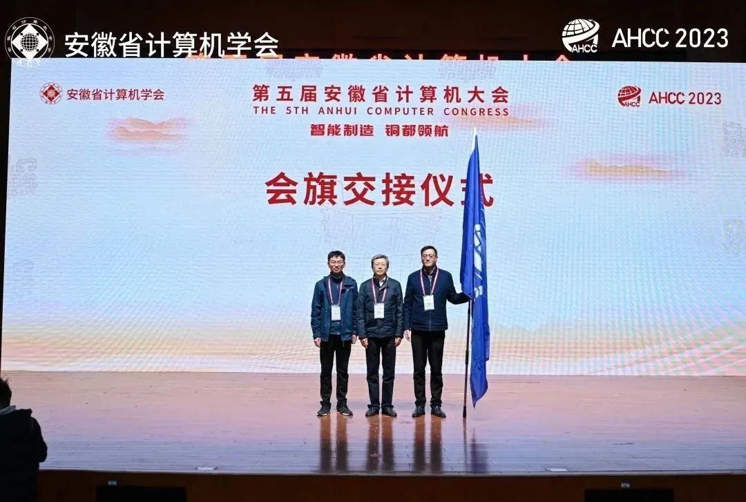 2023年12月8至9日,第五届安徽省计算机大会在铜陵学院举行,来自全国计算机学术界、教育界和产业界的多位领导和专家,高校教师和地方计算机协会产业代表,累计共500余人出席开幕式或参加论坛。学院代表队应邀参加了会议,院长刘奎教授代表下一届举办方参加了学会交旗仪式并接旗。