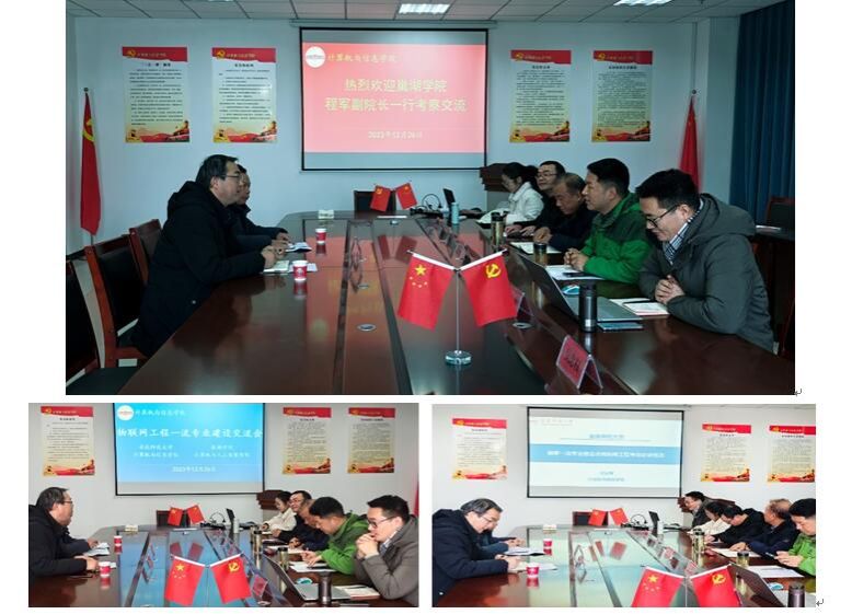 12月26日上午,巢湖学院计算机与人工智能学院副院长程军,物联网工程专业负责人洪兴勇一行到我院进行调研交流。我院副院长吴海峰、国家级一流专业建设点物联网工程专业负责人王一宾、物联网工程和数字媒体技术系主任刘桂江、物联网工程专业教研室主任汪文明和相关老师参加本次交流会。