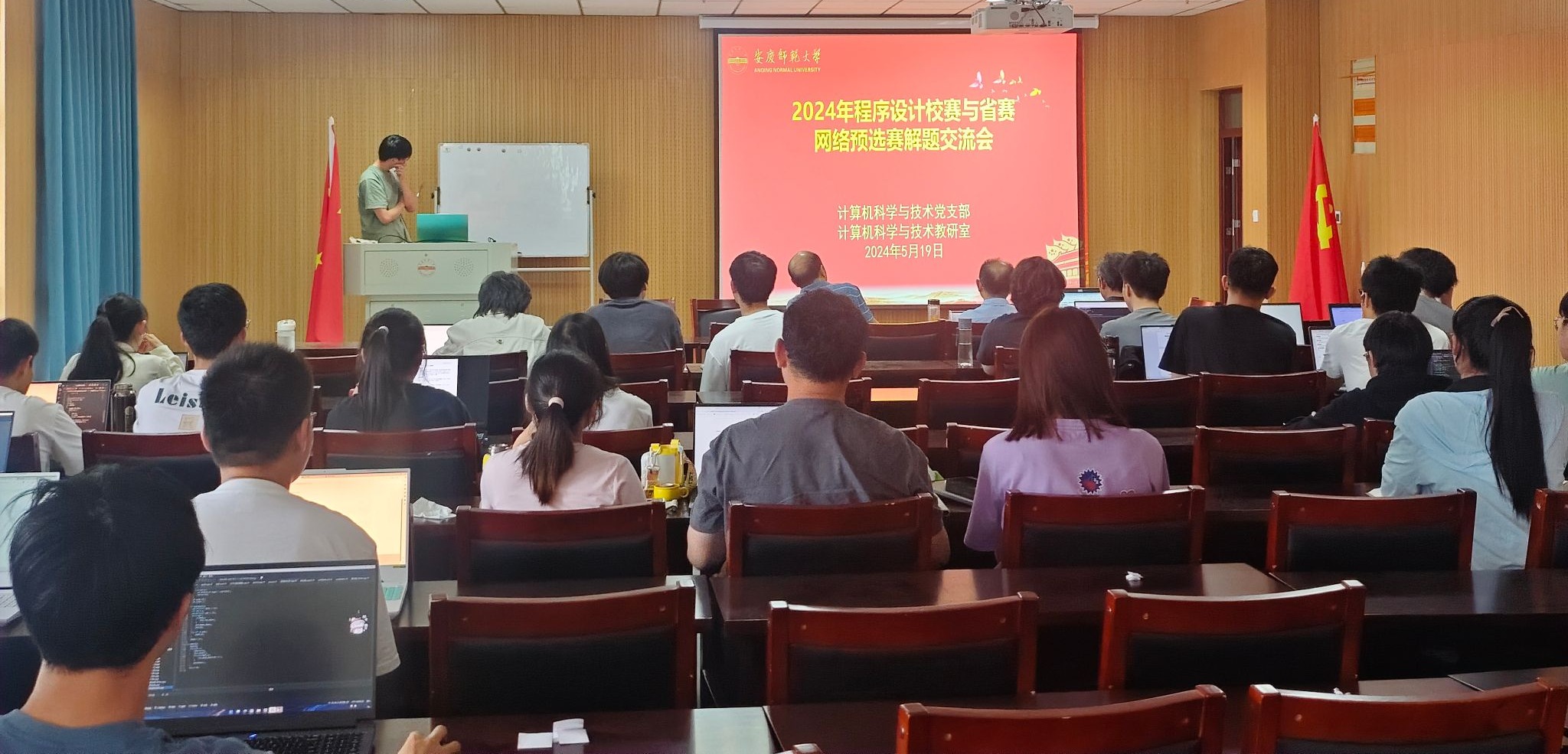 5月19日,计算机科学与技术党支部联合计算机科学与技术教研室,在L302举办了2024年安徽省机器人大赛-程序设计赛道网络预选赛与英国365上市公司第七届程序设计竞赛解题交流会,会议由学院党委委员、该支部书记、教研室主任江克勤主持,教研室部分教师和教练及即将参加2024年安徽省机器人大赛-程序设计赛道现场赛的6支参赛队伍、学院大学生科技创新中心-程序设计算法组的同学们参加了交流会。