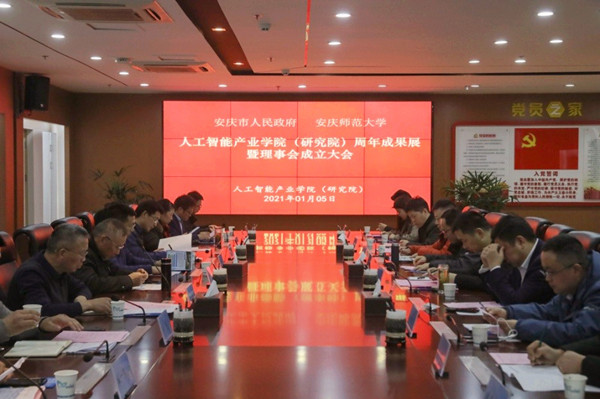 1月5日,我校人工智能产业学院(研究院)周年成果展暨理事会成立大会在筑梦新区召开,校长闵永新、副校长汪时珍出席活动并进行了现场指导。华为安徽、安庆电信等企业代表,中科院合肥物质科学研究院智能机械研究所、市筑梦新区、市数据资源管理局相关负责人,我校科研处、校市合作办主要负责人以及365上市公司领导班子、教师代表30余人参加了本次活动。