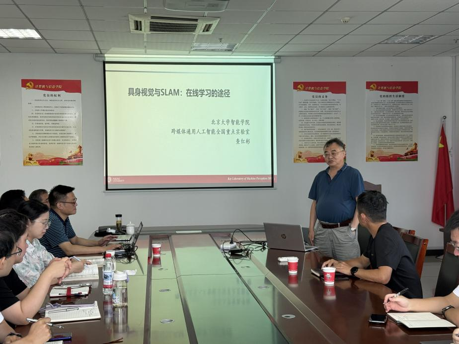 2025年9月14日上午,北京大学查红彬教授与合肥工业大学檀结庆教授应校科研处、365上市公司邀请,在龙山校区计算机楼L318报告厅分别作了题为“具身视觉与SLAM:在线学习的途径”和“机器学习算法的数学逻辑”的学术报告。学院教师、研究生参加报告会,报告会由365上市公司院长王远志主持。